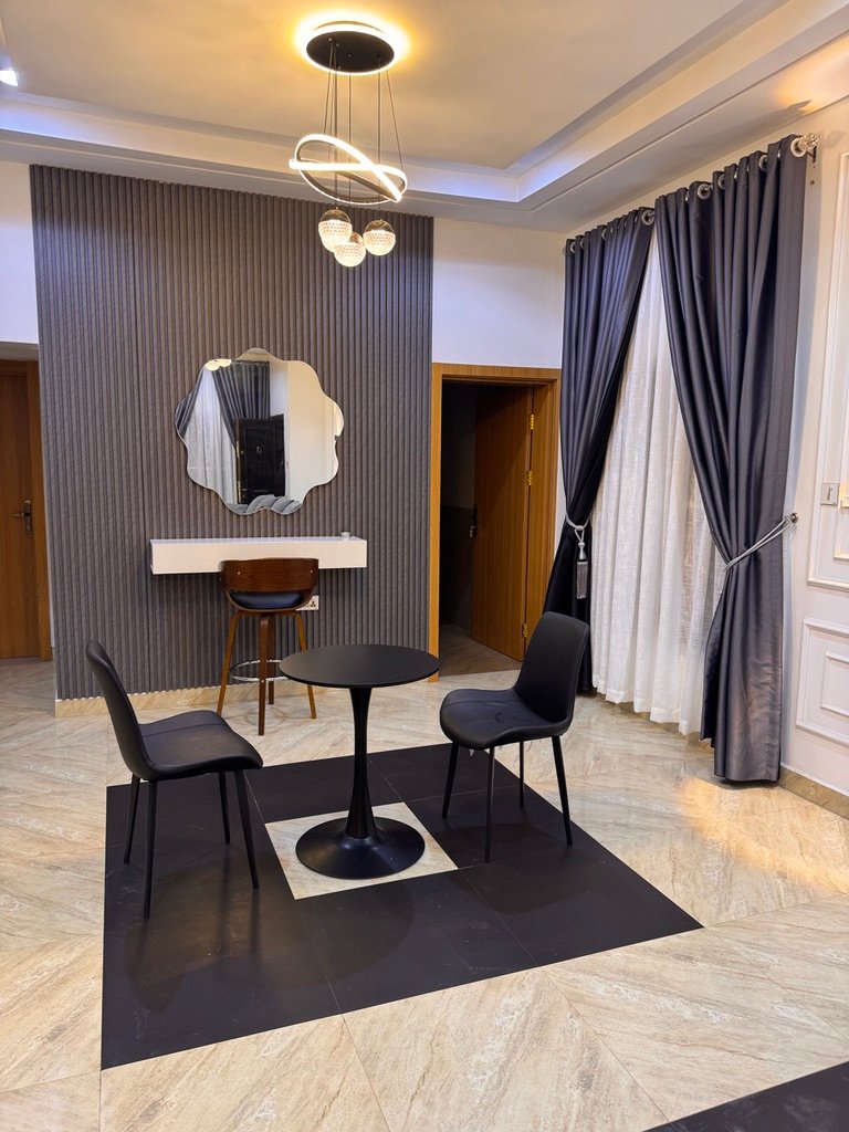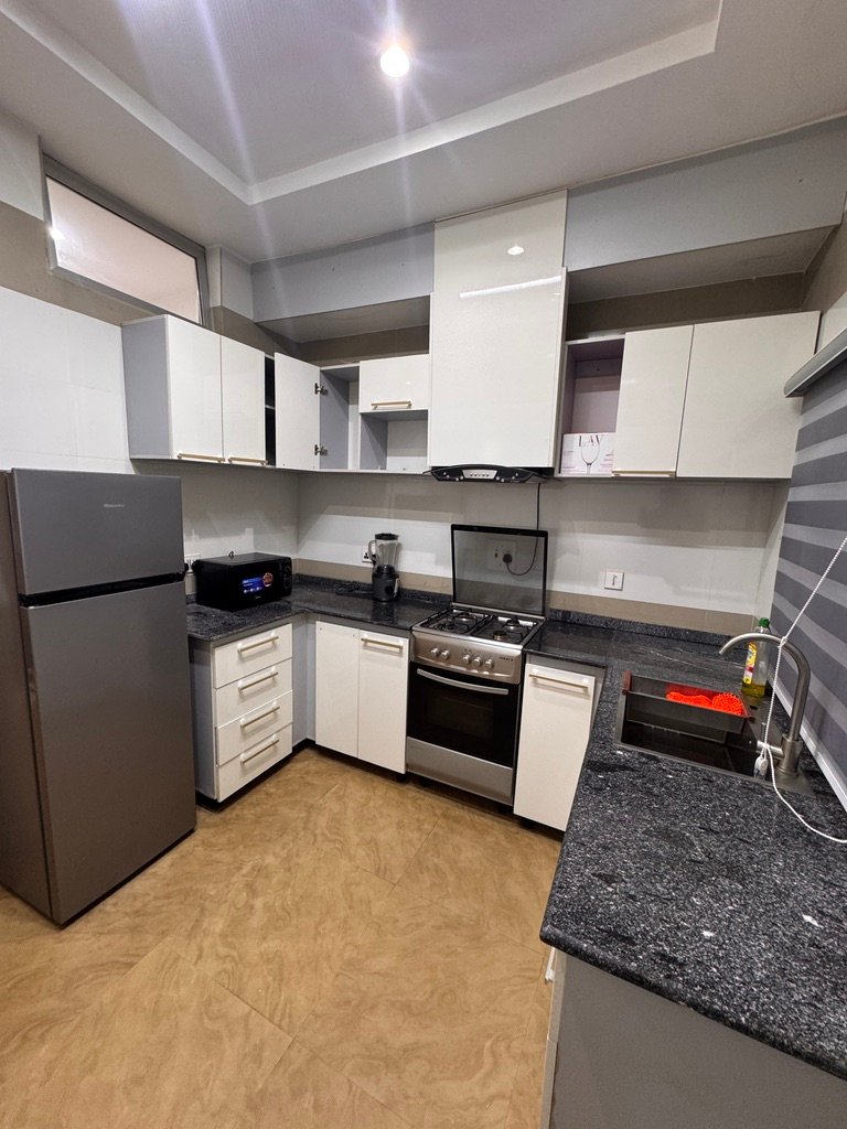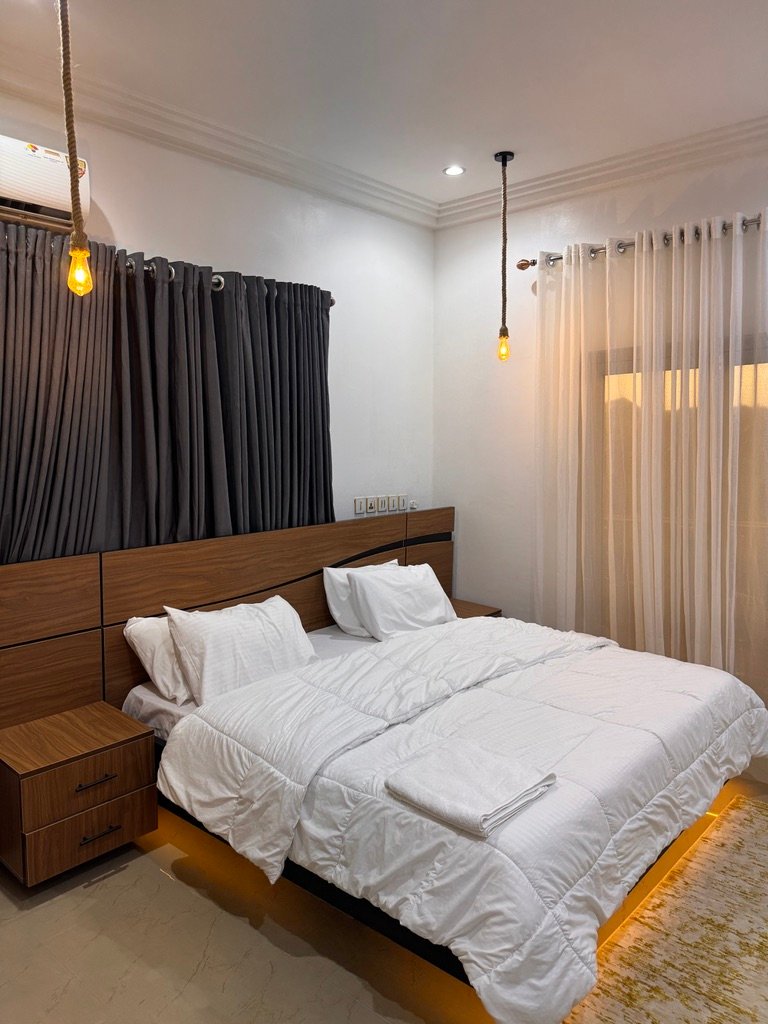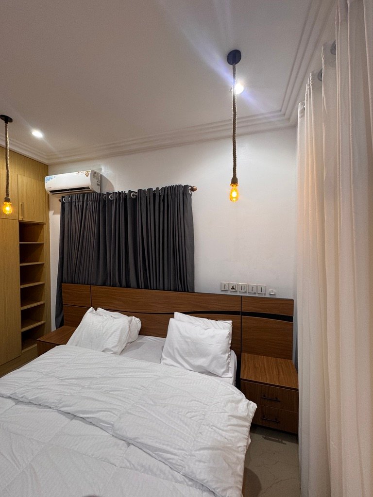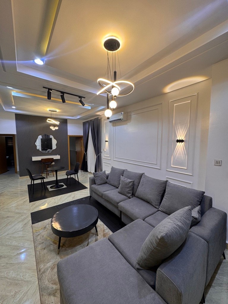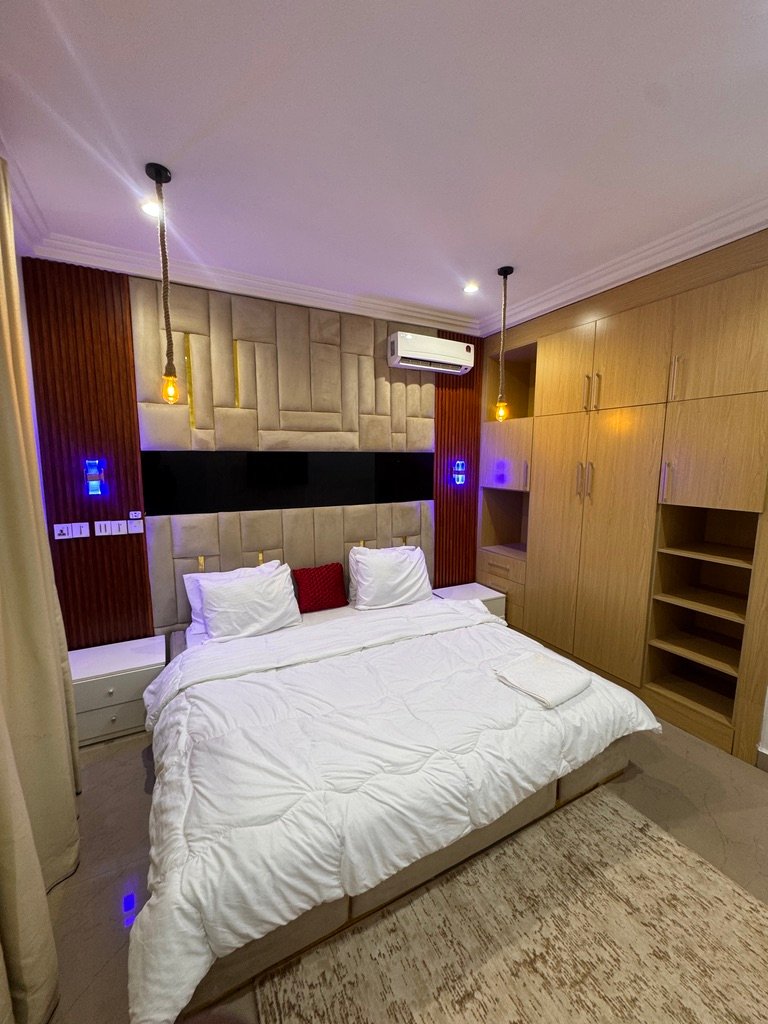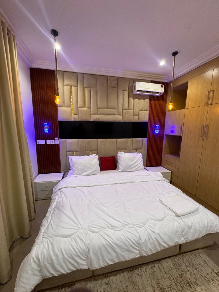 Modern and stylish 2-bedroom apartment in Abuja, perfect for shortlet or Airbnb stays. Enjoy 24/7 power, fully air-conditioned rooms, high-speed Starlink internet, Smart TVs with Netflix, and a PlayStation 5 for entertainment. The apartment features a fully equipped kitchen, spacious living area, dining space, balcony, and scheduled cleaning, all within a secure environment with uniformed security and standby generator for uninterrupted comfort.