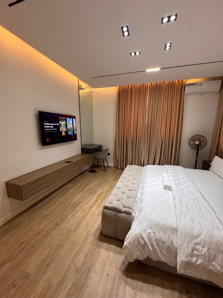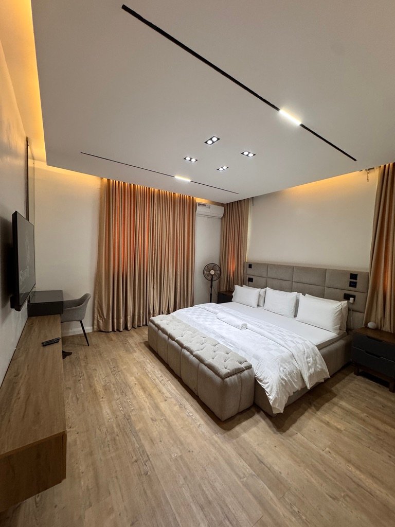 Enjoy comfort and convenience in this stylish 3-bedroom shortlet apartment located in Mabushi, Abuja. Designed for both relaxation and productivity, the apartment features en-suite rooms, 24/7 power supply, fast WiFi, smart TVs with Netflix and DStv, and a fully equipped space including a washing machine and snooker table. Situated in a secure estate with round-the-clock security and close proximity to top entertainment spots, it’s the perfect choice for short and extended stays.