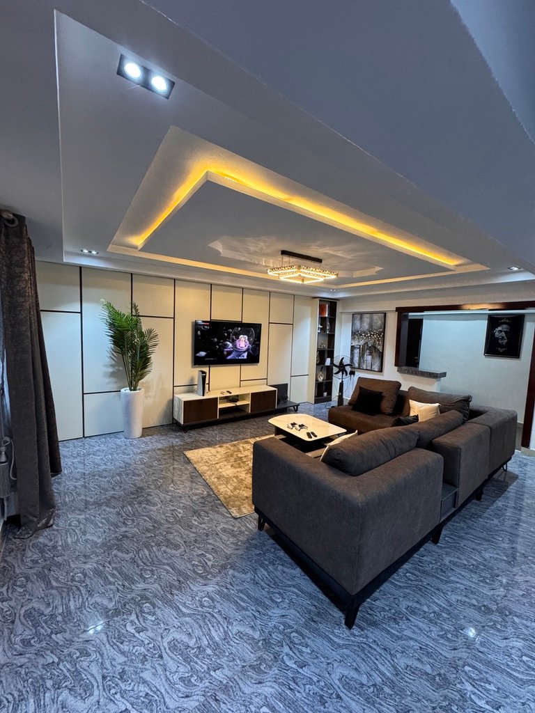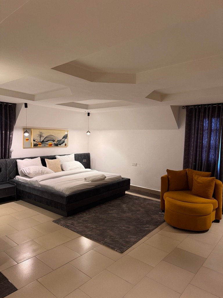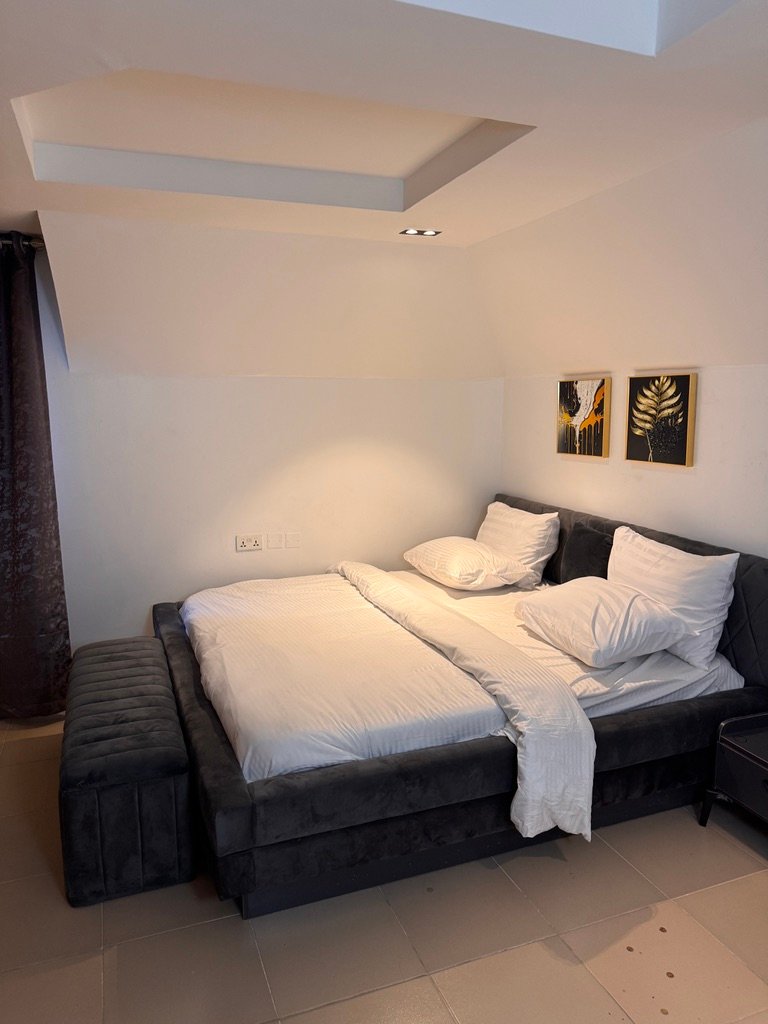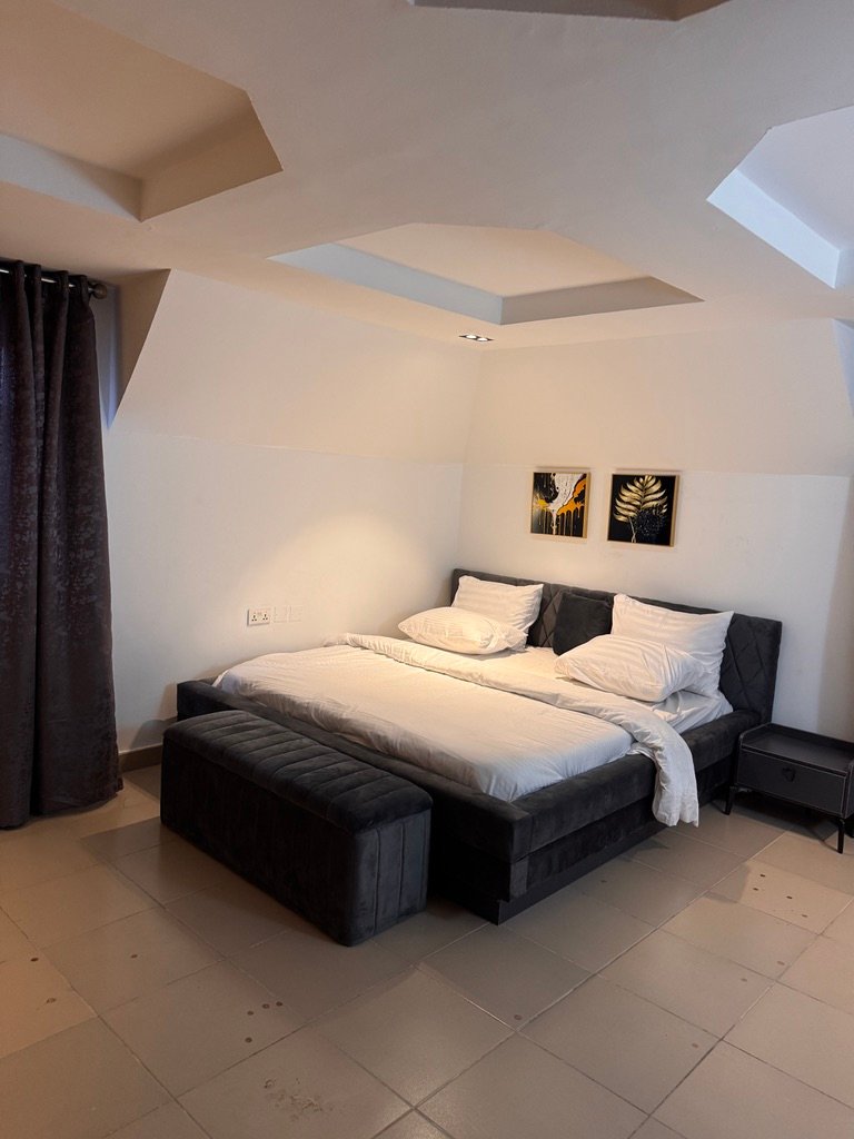 Experience luxury living in this stylish 1-bedroom shortlet penthouse apartment located in the prime Wuye area of Abuja. Situated on the fourth floor of a modern complex, the apartment offers en-suite rooms, a visitor’s toilet, and a fully equipped kitchen with a washing machine and inverter for uninterrupted comfort. Enjoy 24-hour power supply, fast Wi-Fi, and entertainment options including Smart TVs with Netflix and DStv, as well as a PlayStation 5. The building features a standby generator, elevator (note: elevator was temporarily out of service at the time of visit), and 24-hour security patrol, ensuring safety and convenience. With its prime location near popular fun centers, this penthouse provides the perfect blend of comfort, entertainment, and accessibility for short-term stays.