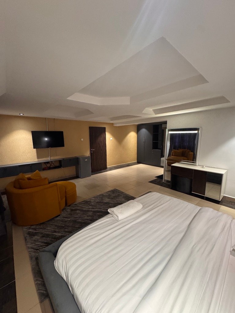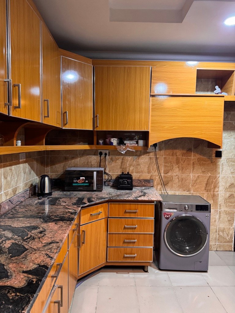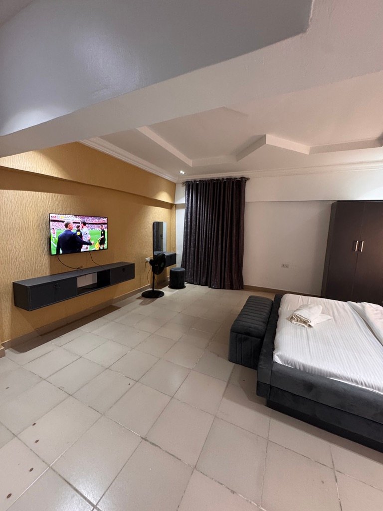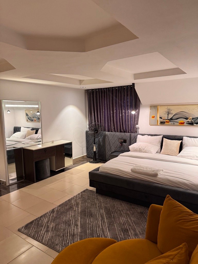 Experience luxury living in this stylish 1-bedroom shortlet penthouse apartment located in the prime Wuye area of Abuja. Situated on the fourth floor of a modern complex, the apartment offers en-suite rooms, a visitor’s toilet, and a fully equipped kitchen with a washing machine and inverter for uninterrupted comfort. Enjoy 24-hour power supply, fast Wi-Fi, and entertainment options including Smart TVs with Netflix and DStv, as well as a PlayStation 5. The building features a standby generator, elevator (note: elevator was temporarily out of service at the time of visit), and 24-hour security patrol, ensuring safety and convenience. With its prime location near popular fun centers, this penthouse provides the perfect blend of comfort, entertainment, and accessibility for short-term stays.