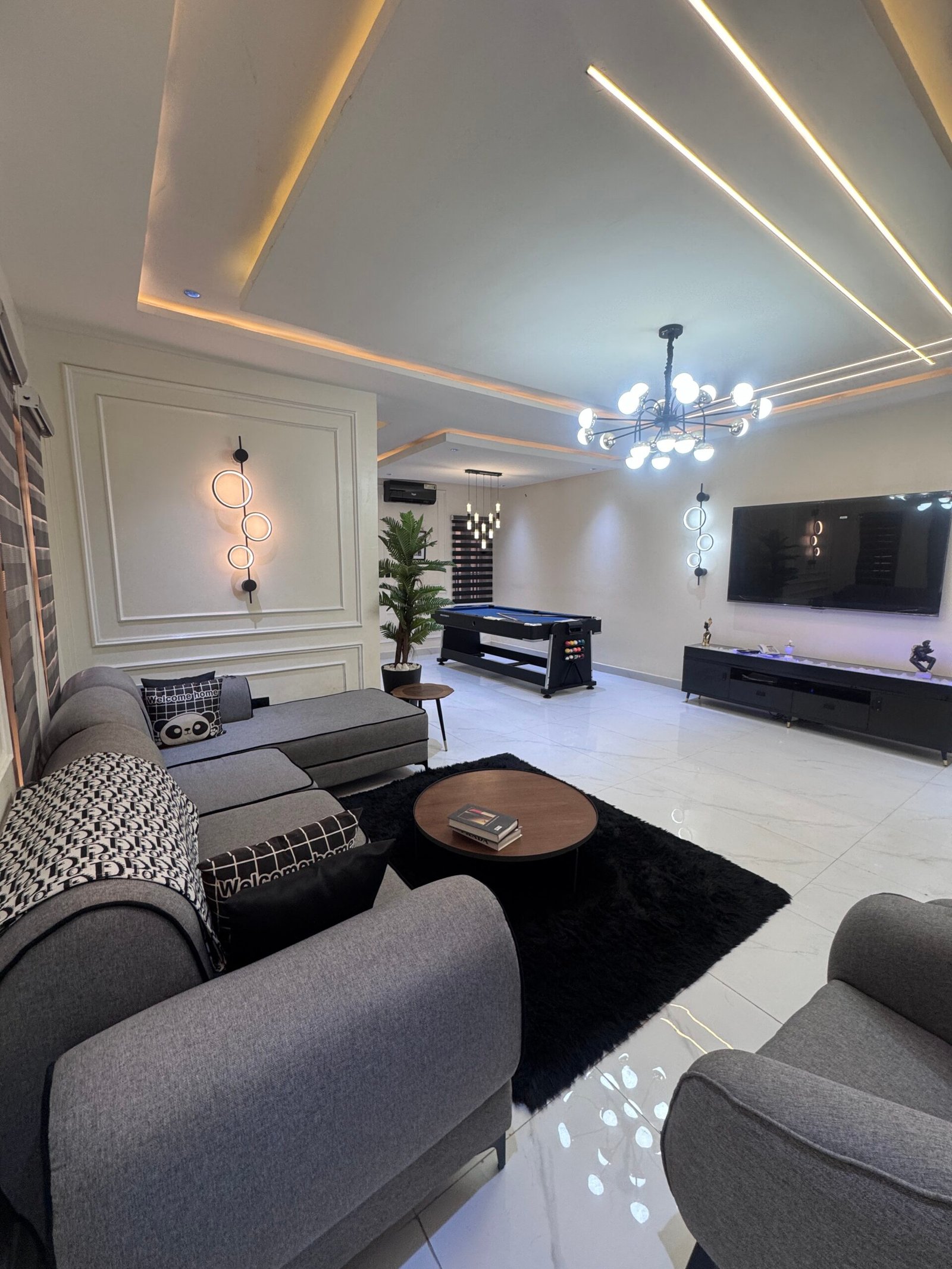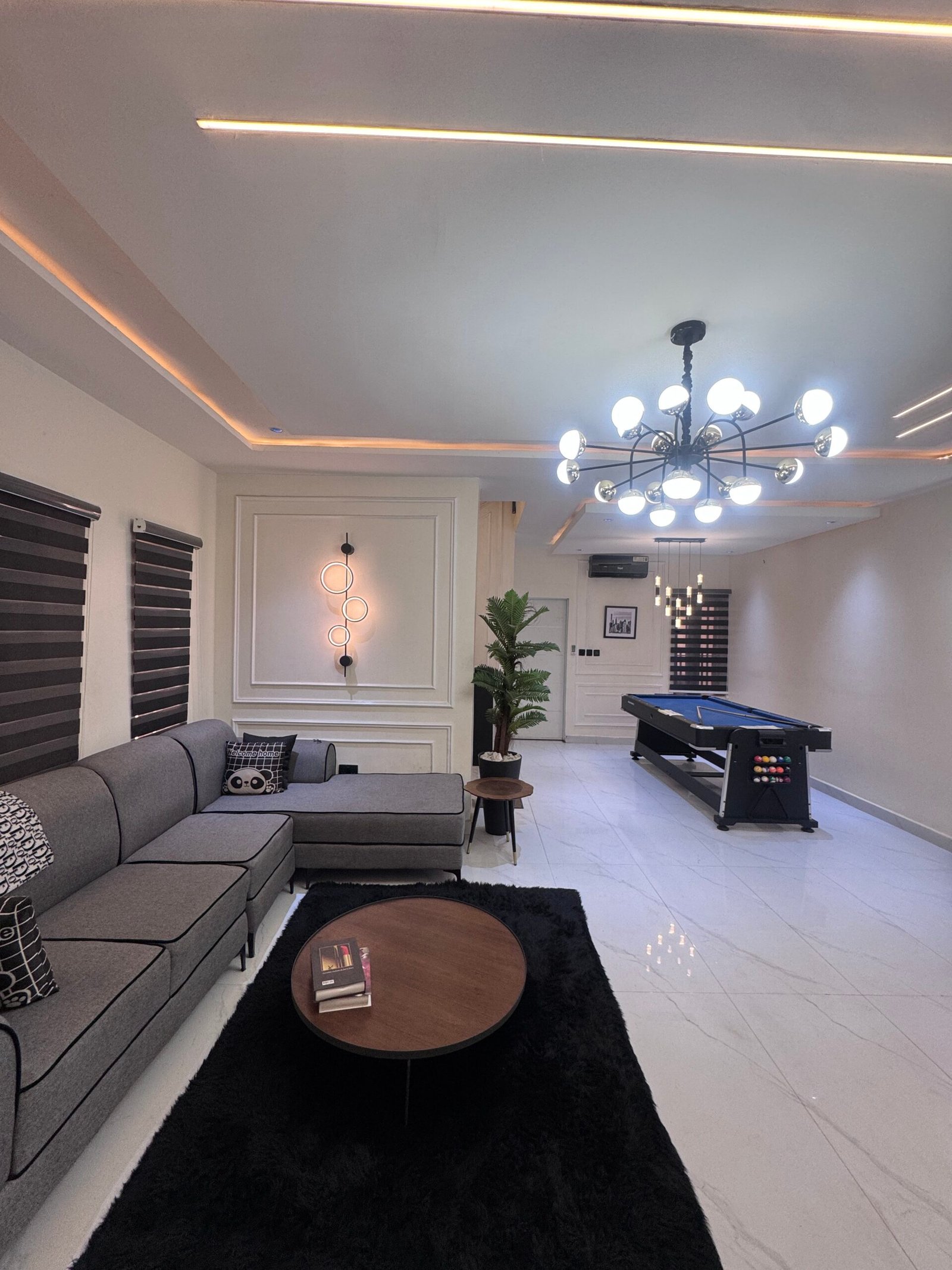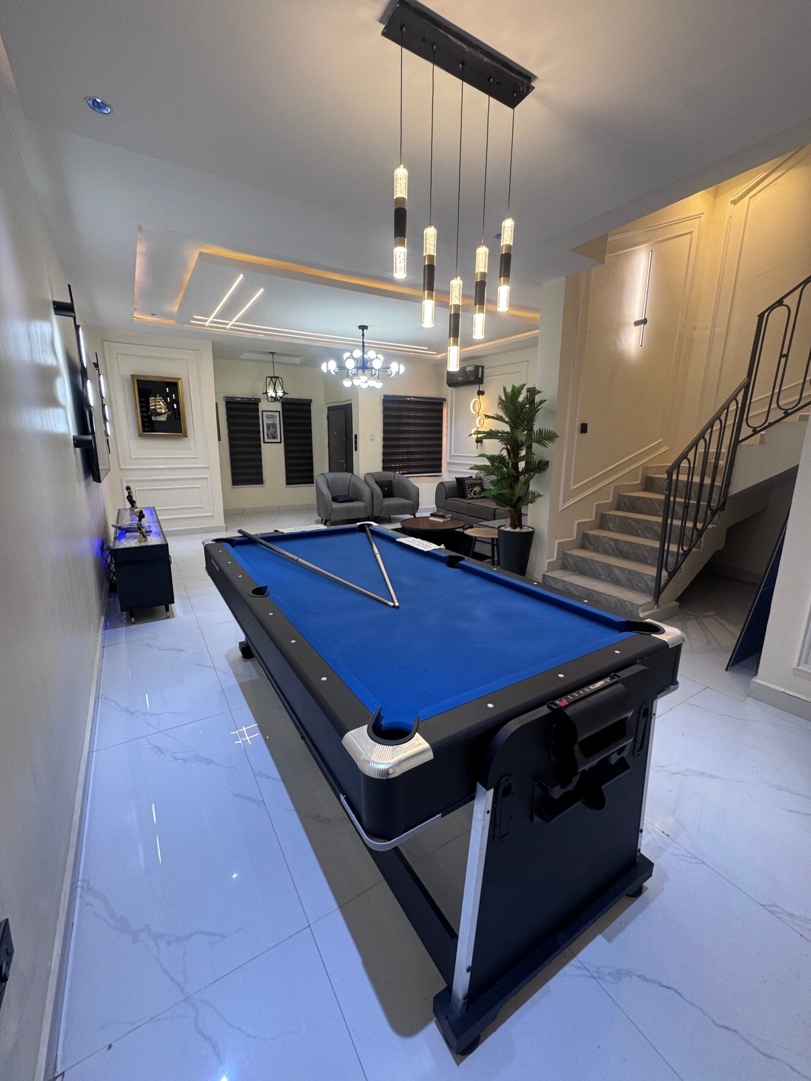 Experience luxury and comfort in this beautifully designed 4-bedroom duplex shortlet apartment located in the heart of Jabi, offering the perfect blend of elegance, convenience, and modern living. This spacious apartment features fully en-suite bedrooms, a stylish living area, and two private balconies that provide a relaxing atmosphere for guests. Enjoy uninterrupted comfort with 24-hour power supply supported by a standby generator, high-speed Wi-Fi, and smart TVs with Netflix and DStv for your entertainment. The apartment is fully equipped with a washing machine, a visitor’s toilet, and premium furnishings to ensure a seamless stay. For leisure, guests can unwind with a snooker setup, while 24-hour security patrol guarantees safety and peace of mind. Situated in a prime location with close proximity to top restaurants, malls, and fun centers, this property is ideal for both short and extended stays, delivering a refined home-away-from-home experience in Abuja.