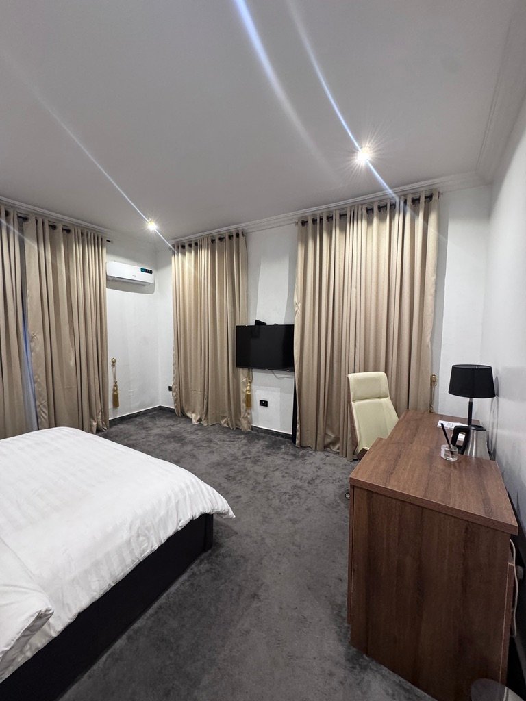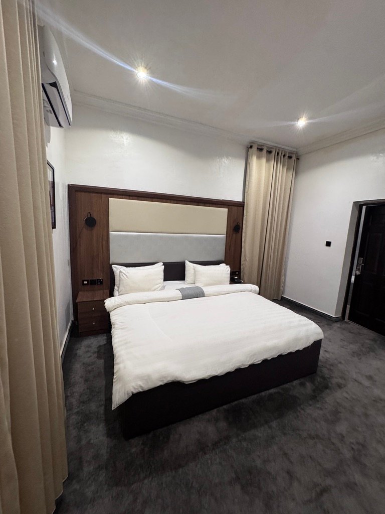 Experience comfort and convenience in this stylish hotel apartment located in the heart of Lifecamp, Abuja, around Lifecamp Police Station. The apartment offers 24-hour power supply, fast Wi-Fi, and air-conditioned rooms to ensure a relaxing stay, complemented by a standby generator for uninterrupted service. Each en-suite room is equipped with smart TVs, Netflix, and DStv for your entertainment. Enjoy added amenities such as a gazebo, laundry services, and round-the-clock security patrols for peace of mind. Situated in a prime location, the apartment provides easy access to nearby fun centers and attractions, making it an ideal choice for both leisure and business travelers.