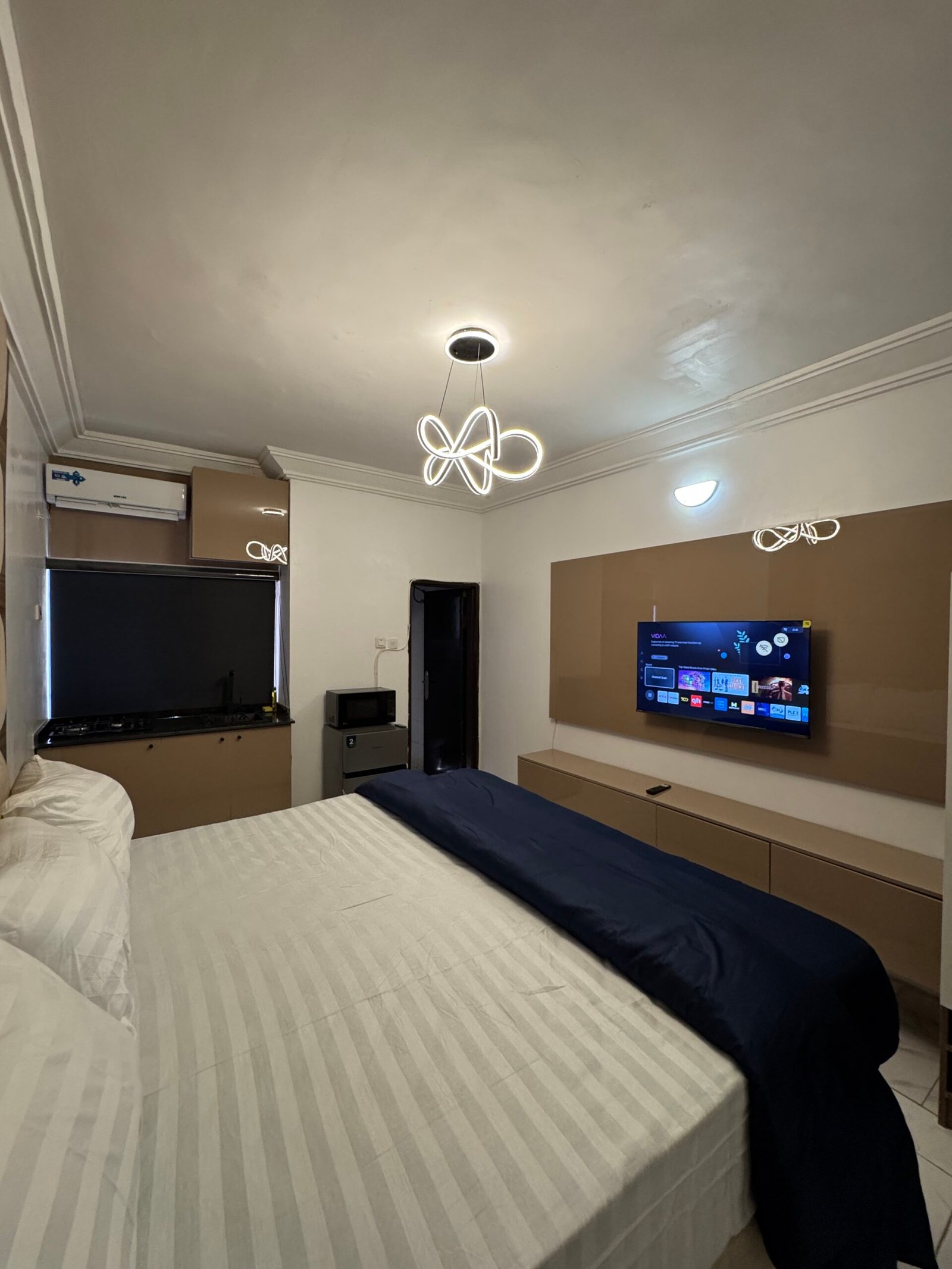 This beautifully designed studio apartment in Utako, Abuja offers a perfect blend of comfort, convenience, and modern living, making it ideal for both short stays and extended rentals at an affordable rate. The apartment features a fully en-suite layout with a well-equipped kitchen, ensuring guests enjoy privacy and functionality, while modern amenities such as a smart TV with Netflix and DStv, fast Wi-Fi, and uninterrupted 24-hour power supply supported by an inverter and standby generator provide a seamless living experience. Located in a prime area, the property also benefits from 24-hour security patrol for peace of mind and is strategically positioned close to major fun centers and key attractions, making it perfect for both relaxation and easy access to Abuja’s vibrant lifestyle.