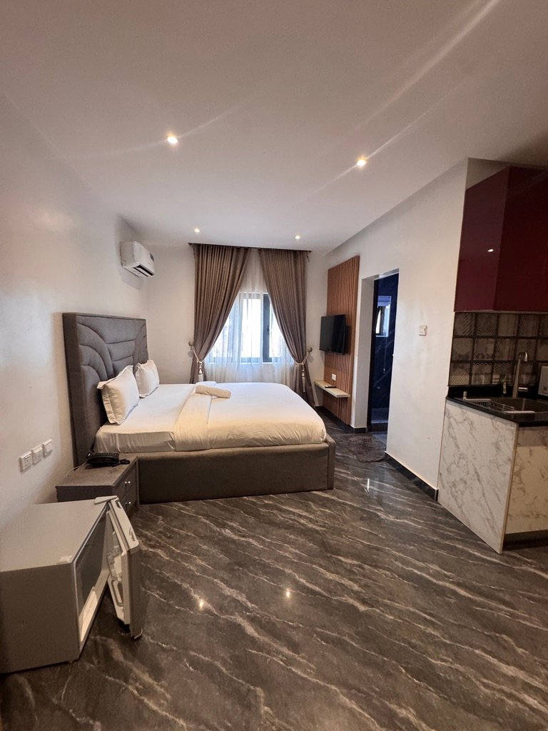 Experience comfort and convenience in this stylish studio apartment located in Wuse 2, Abuja. Designed for both short and extended stays, the space features modern interiors, smart TVs, fast WiFi, and a luxurious bathroom with a bathtub.